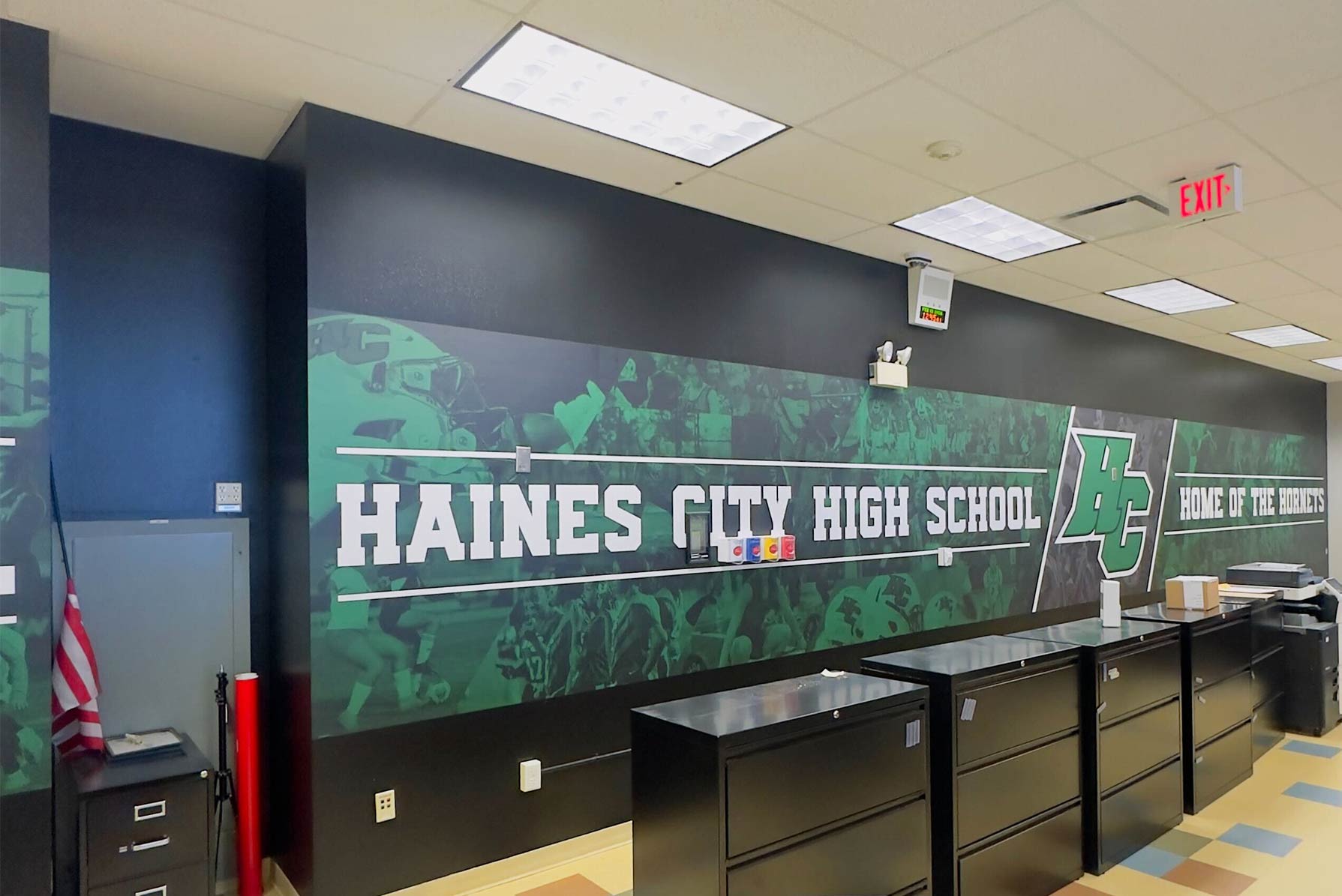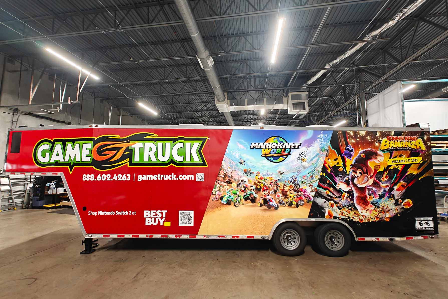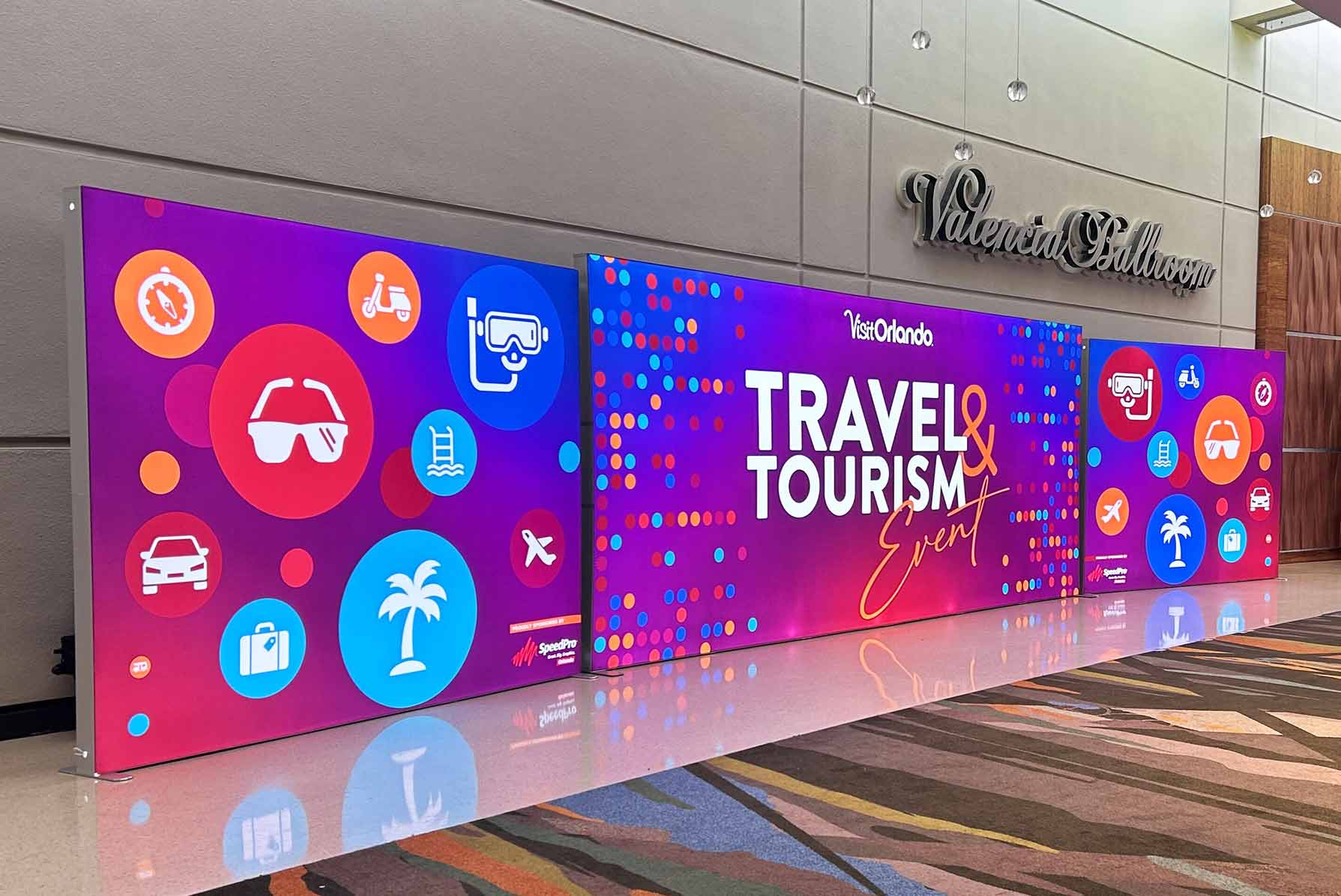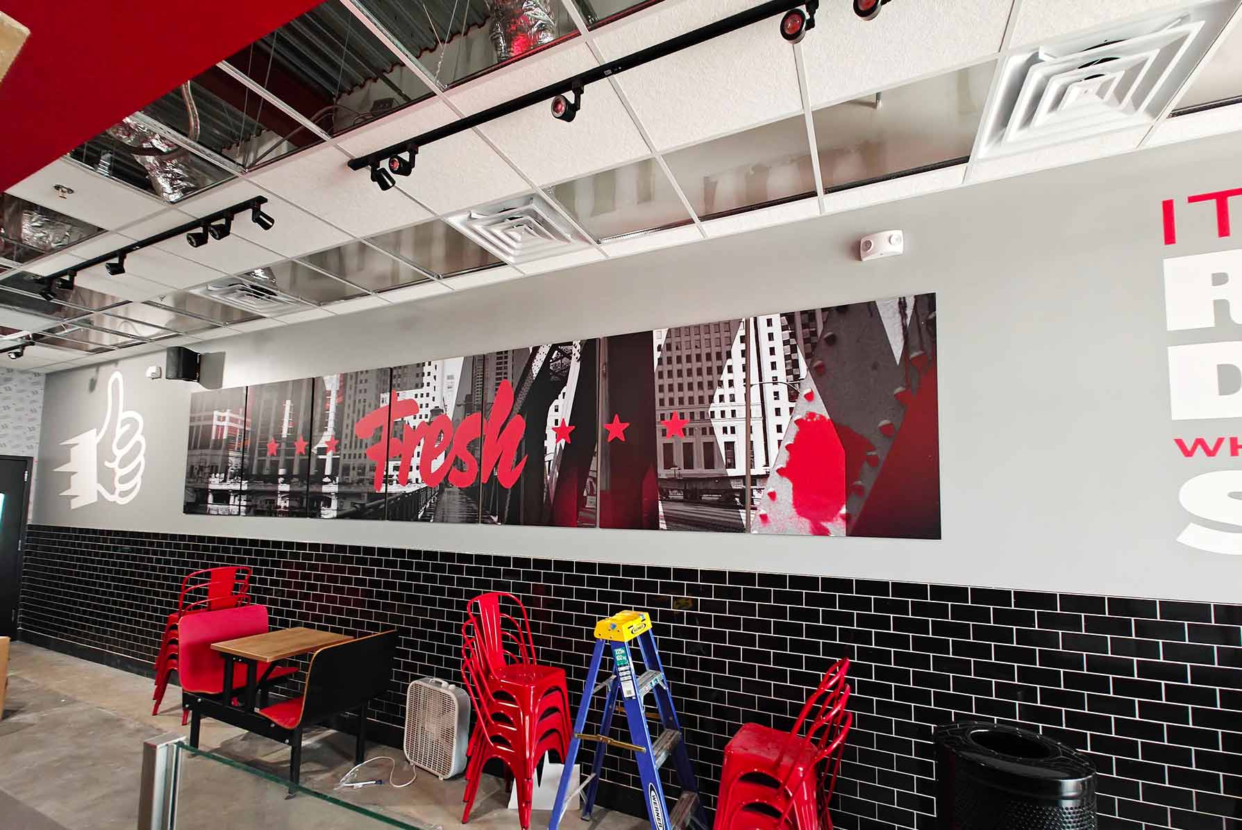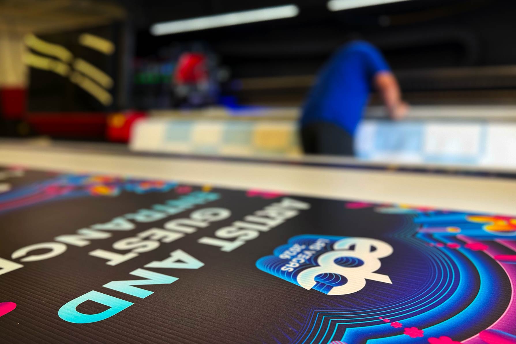 Large-format graphics across vinyl, rigid, fabric, backlit, and specialty substrates.